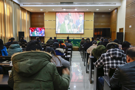 圖為集團(tuán)全體干部職工收看現(xiàn)場