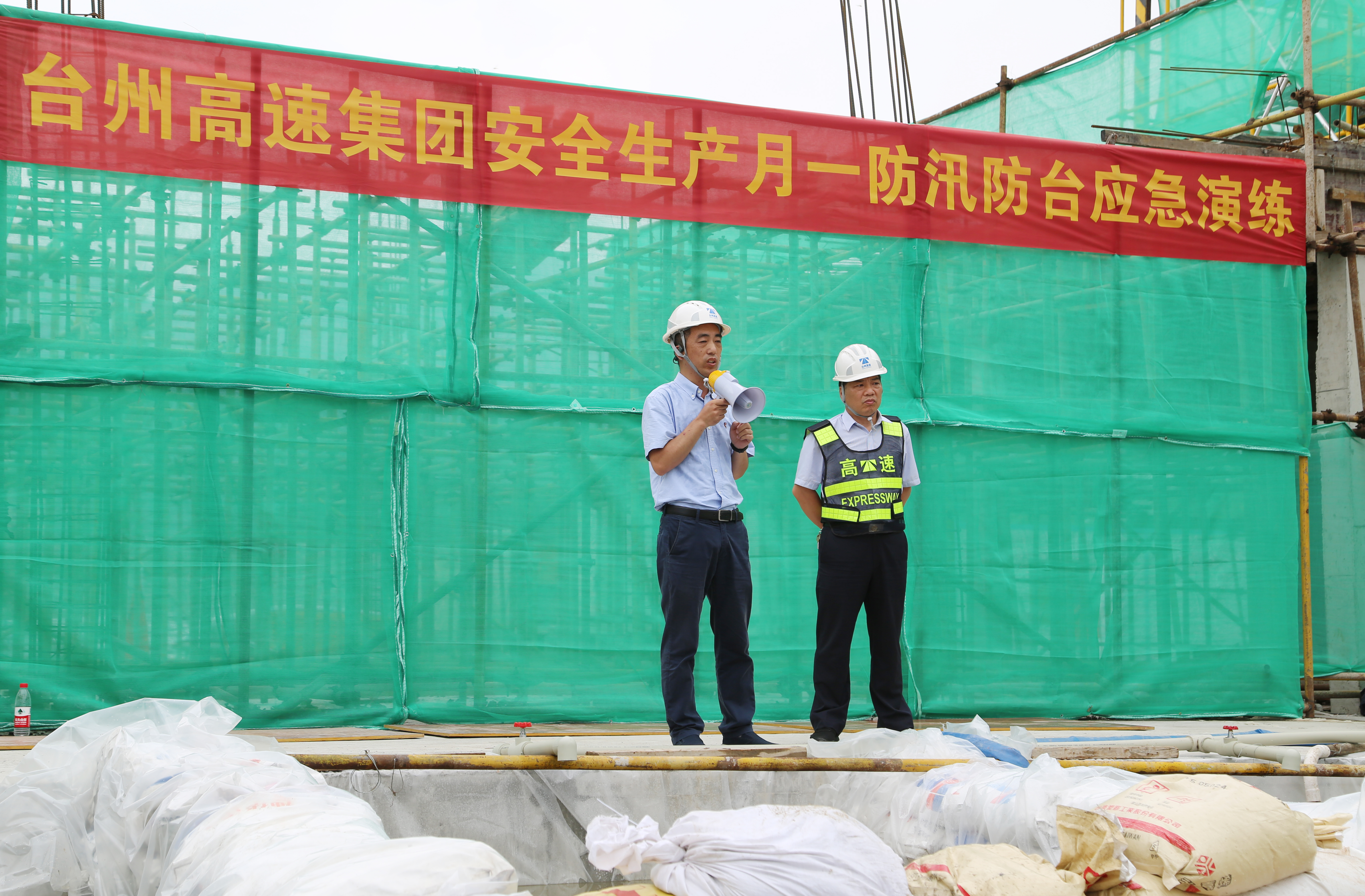 房產集團員工參加“安全生產月”防汛防臺應急演練 6月10日上午,集團于黃巖雅林項目工地開展“安全生產月”防汛防臺應急演練。高速房產集團總經理汪利國、副董事長彭楊軍,高速仁和房產副總經理蔡挺杉及各部門代表參加此次應急演練。