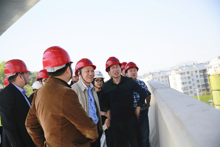 圖為公司總經理張建平在8#立交橋上了解相關工程情況