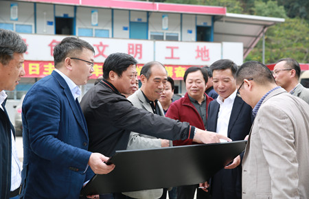 圖為市人大領導在8#立交項目部查看工程建設展板